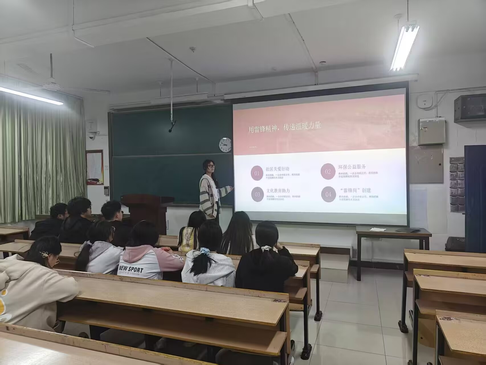 活动伊始,主持人围绕雷锋精神的时代内涵展开讲解,通过PPT展示了社区关爱行动、环保公益服务、文化教育助力、“雷锋岗”创建等多种形式的志愿服务方向,让同学们清晰了解雷锋精神在当代的实践路径。随后,现场播放雷锋主题相关内容,带领同学们重温雷锋事迹,感悟雷锋精神的内核。讲解结束后,学院优秀志愿者分享了自身参与志愿服务的经历与感悟,围绕如何从身边小事践行雷锋精神展开交流讨论,同学们结合校园文明建设提出了具体行动建议。最后,全体参与人员进行宣誓,表达学习雷锋精神、参与志愿服务的决心。