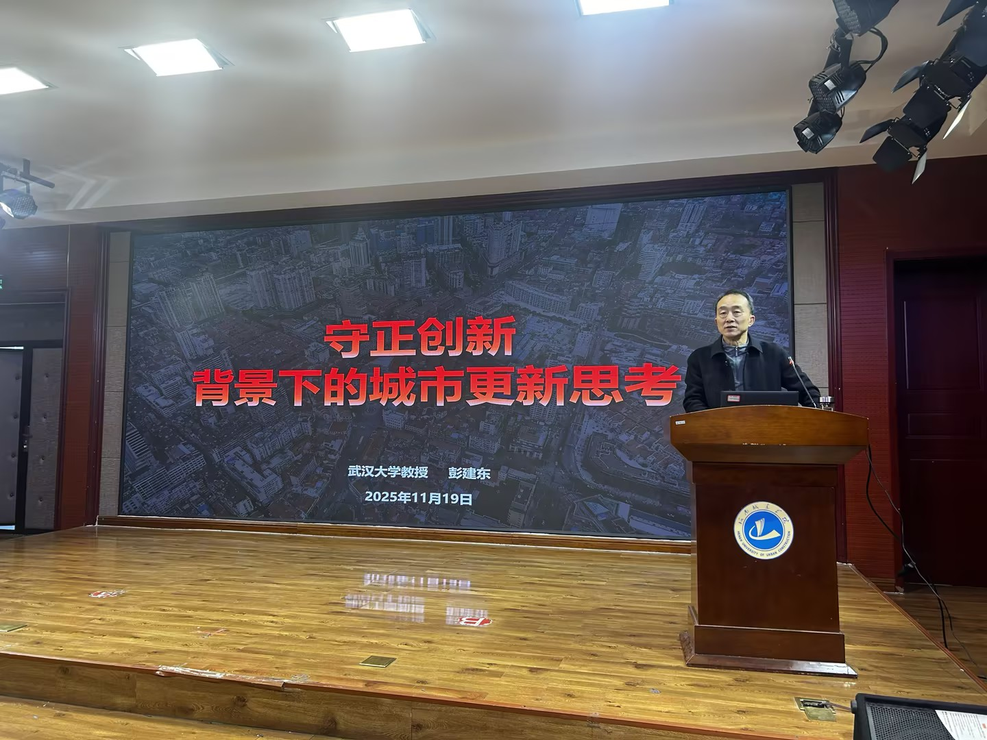 为进一步拓展我校师生学术视野,深化对城市更新领域前沿理念的认知,2025年11月19日上午,学院邀请武汉大学城市设计学院彭建东教授,在4号楼楼音乐教室作题为“守正创新下的城市更新思考”的专题学术报告。全校相关专业师生及学术爱好者齐聚现场,共同聆听这场兼具理论深度与实践温度的学术盛宴。