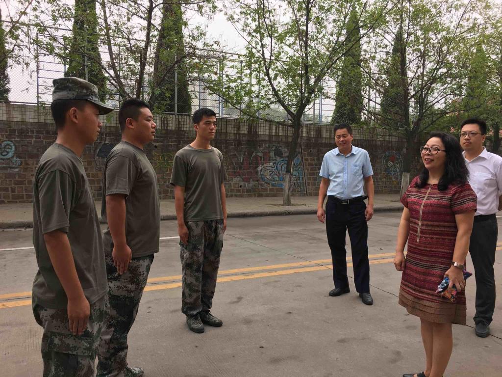 院长邢燕等一行人首先慰问了军训的教官们,向他们询问并了解学生的军训状态、身体状况和训练成果。在听完教官的讲解后,邢院长对教官们的辛勤付出表示感谢,并且表示希望教官对学生们严格要求,提高学生们的精神面貌,锻炼他们的意志,以达到军训的目的,让新生们能以充沛的状态迎接之后的大学生活。