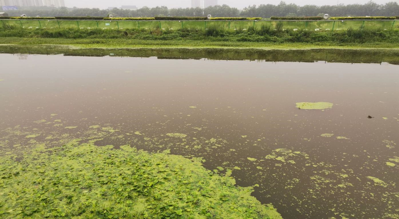 唐河(唐河县段)水面上浮现的水藻