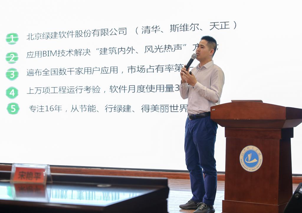 挂牌仪式后,举办了“绿色建筑模拟技术交流会”。交流会由建筑与城市规划学院副院长朱晓菲副教授主持,北京绿建软件股份有限公司副总经理陈成做了题为《绿色建筑模拟技术高校教育应用》和技术部经理陈颖做了题为《从绿色到健康:性能模拟助力营造宜居环境》的主题报告。报告围绕绿色建筑设计全过程提供相关模拟分析软件和策划评价系统,从风环境、光环境、热环境和声环境等多方位对建筑性能进行分析和优化,为学院绿色建筑教学与科研提供了技术支撑。