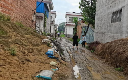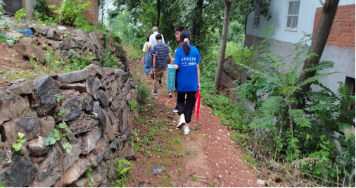 图为学院走访小组冒雨前往受访学生家中