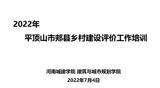 (通讯员:赵玉凤)2022年07月04日,平顶山市郏县召开了2022年乡村建设评价工作动员部署暨培训会。郏县连续三年作为国家乡村建设评价样本县,县委县政府高度重视此次乡村建设评价工作,县发改委、县财政局、县住建局、统计局等相关部门及各乡镇(街道)参加会议。受郏县住房和城乡建设局邀请,河南城建学院建筑与城市规划学院赵玉凤带领省级专家团队一行4人参加了会议并进行专项培训。培训会由郏县政府办副主任张怀清主持,主管副县长陈高超出席会议,并做重要讲话。
