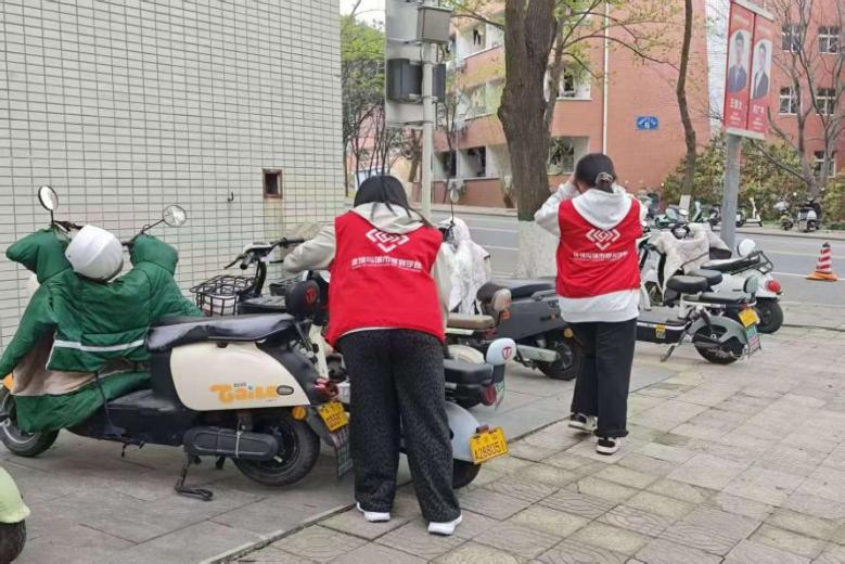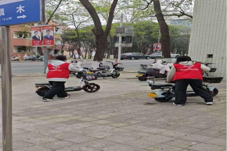 活动前期,志愿者们进行了专项培训,明确了车辆摆放标准,确保志愿服务规范高效开展。活动现场,志愿者们身穿统一红色志愿马甲,分工协作、认真履职。大家对系楼周边停放区域的歪斜电动车逐一扶正,将占用通道、超出停车线的车辆挪移归位。经过志愿者们的共同努力,原本杂乱的停车区域变得整齐有序,校园道路通行效率与环境美观度得到显著提升。
