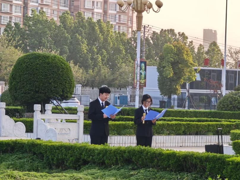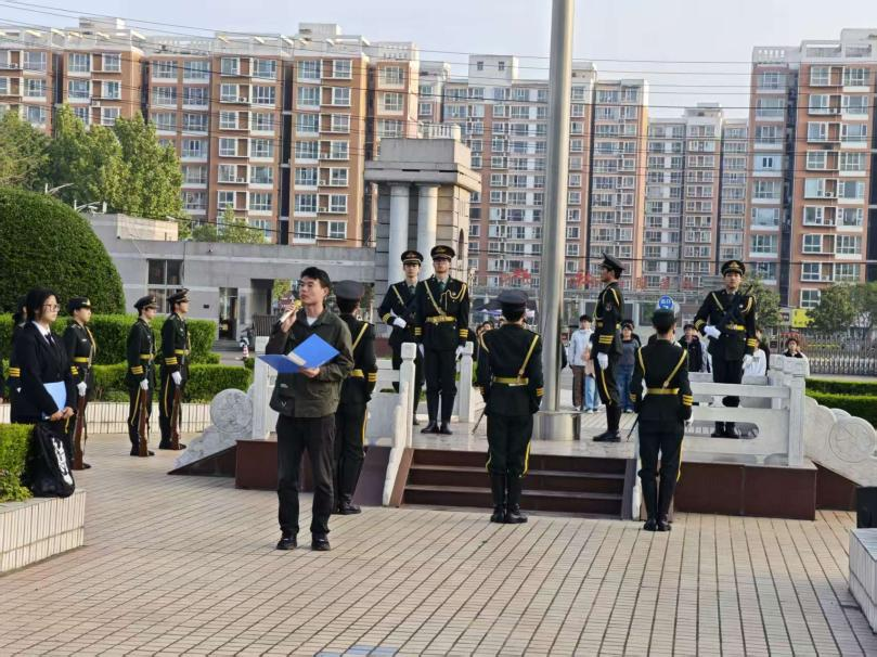 活动启动之初,国旗护卫队队员身着制式礼服,迈着整齐且坚定有力的正步,护卫着国旗入场,其步伐刚健雄浑,充分展现出蓬勃向上的精神风貌。随后,全体师生庄严肃立,在激昂雄壮的《义勇军进行曲》旋律中,五星红旗冉冉升起,全体人员行注目礼,向国旗致以崇高的敬意。升旗仪式结束后,学生代表登上讲台,在国旗下发言,分享个人感悟与成长收获;教师代表紧接着发表讲话,对同学们提出了饱含深情的期望与明确要求。最后,全体学生面向国旗庄严宣誓,以掷地有声的誓言彰显了爱国爱党、奋勇前行的坚定决心。整个活动在庄重肃穆的氛围中有序开展。