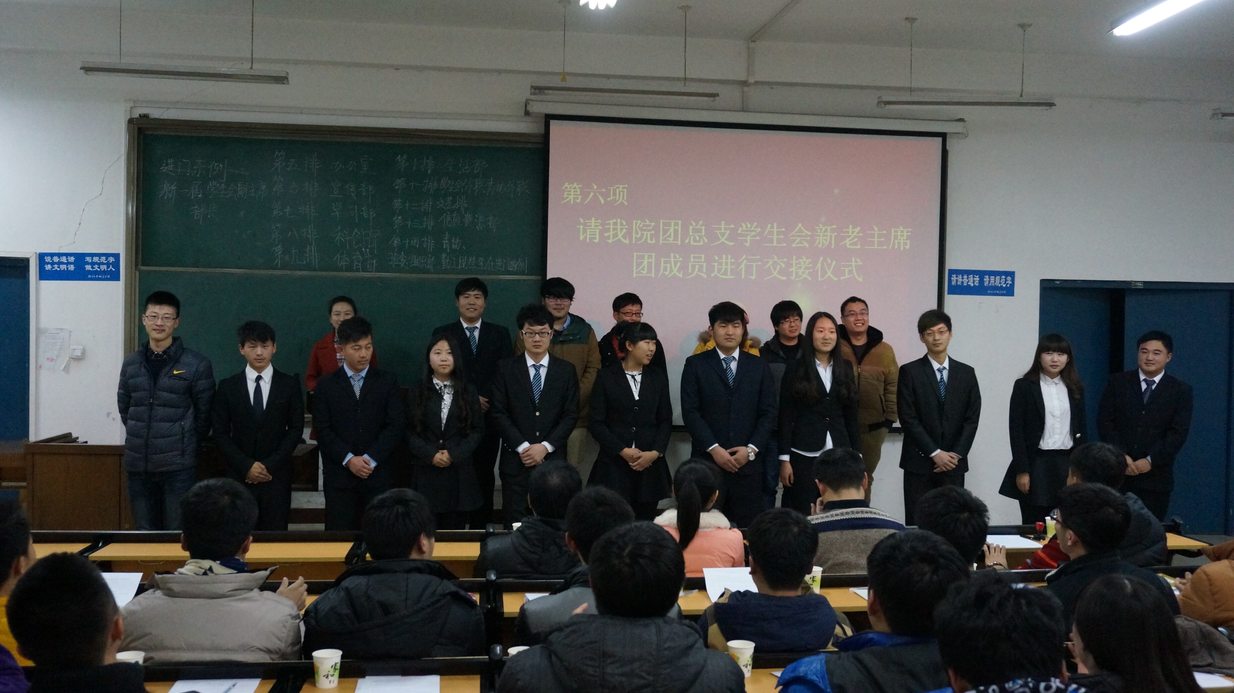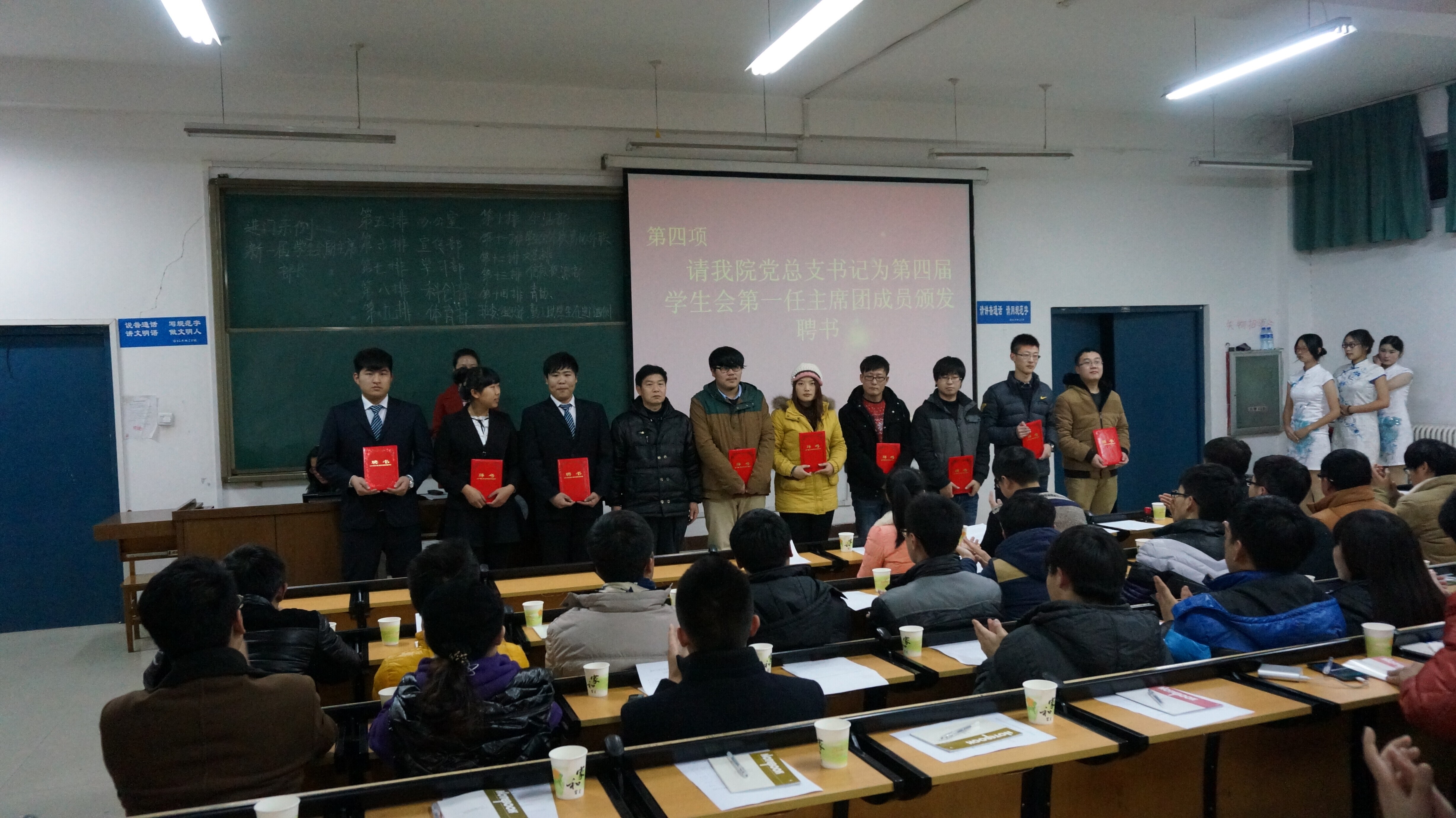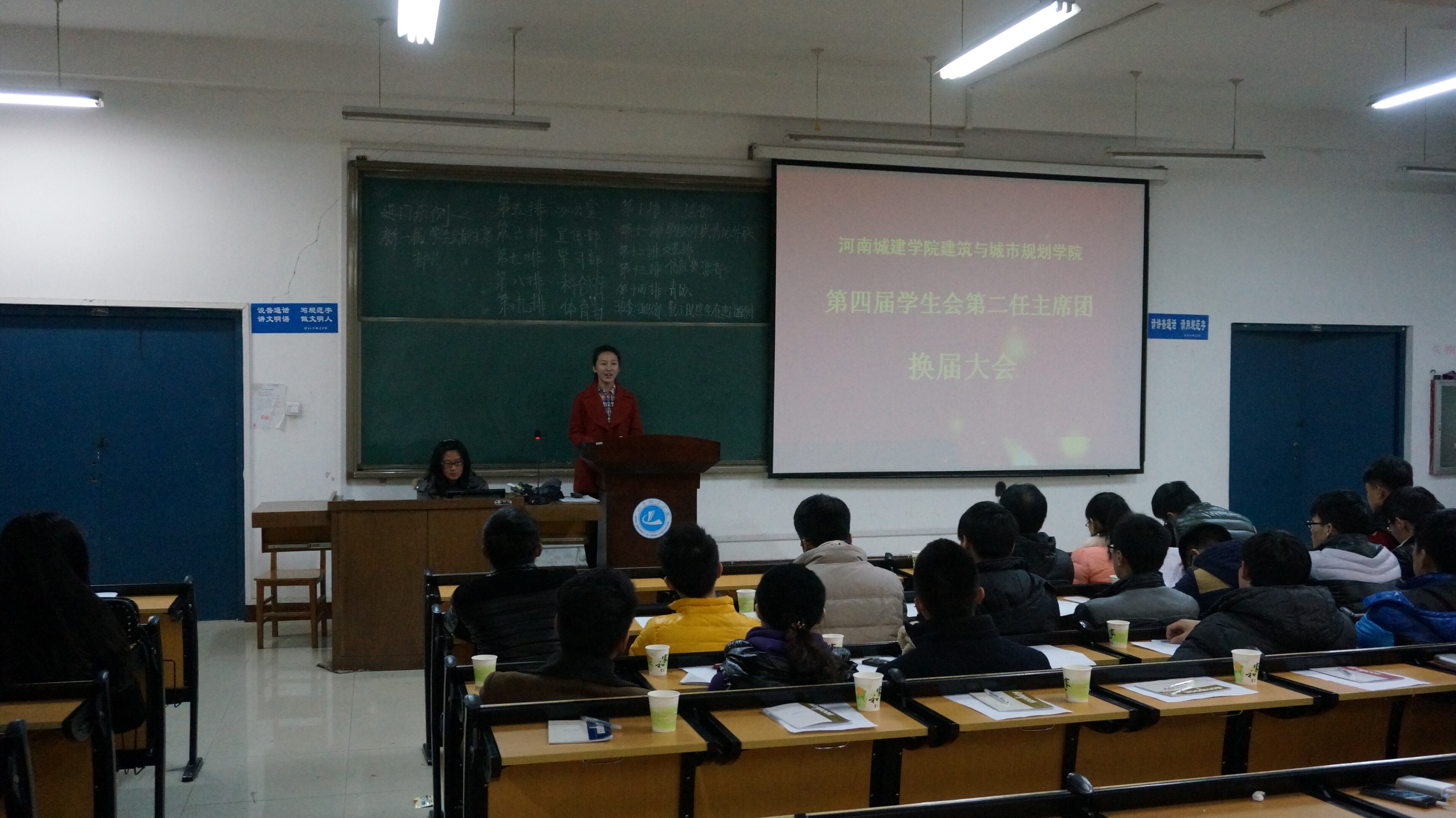 2014年12月19日晚,在四号楼a201教室,建筑与城市规划学院隆重举行了学生会第四届换届大会,本院任华国书记和学工办李晓东主任等老师莅临此次大会。