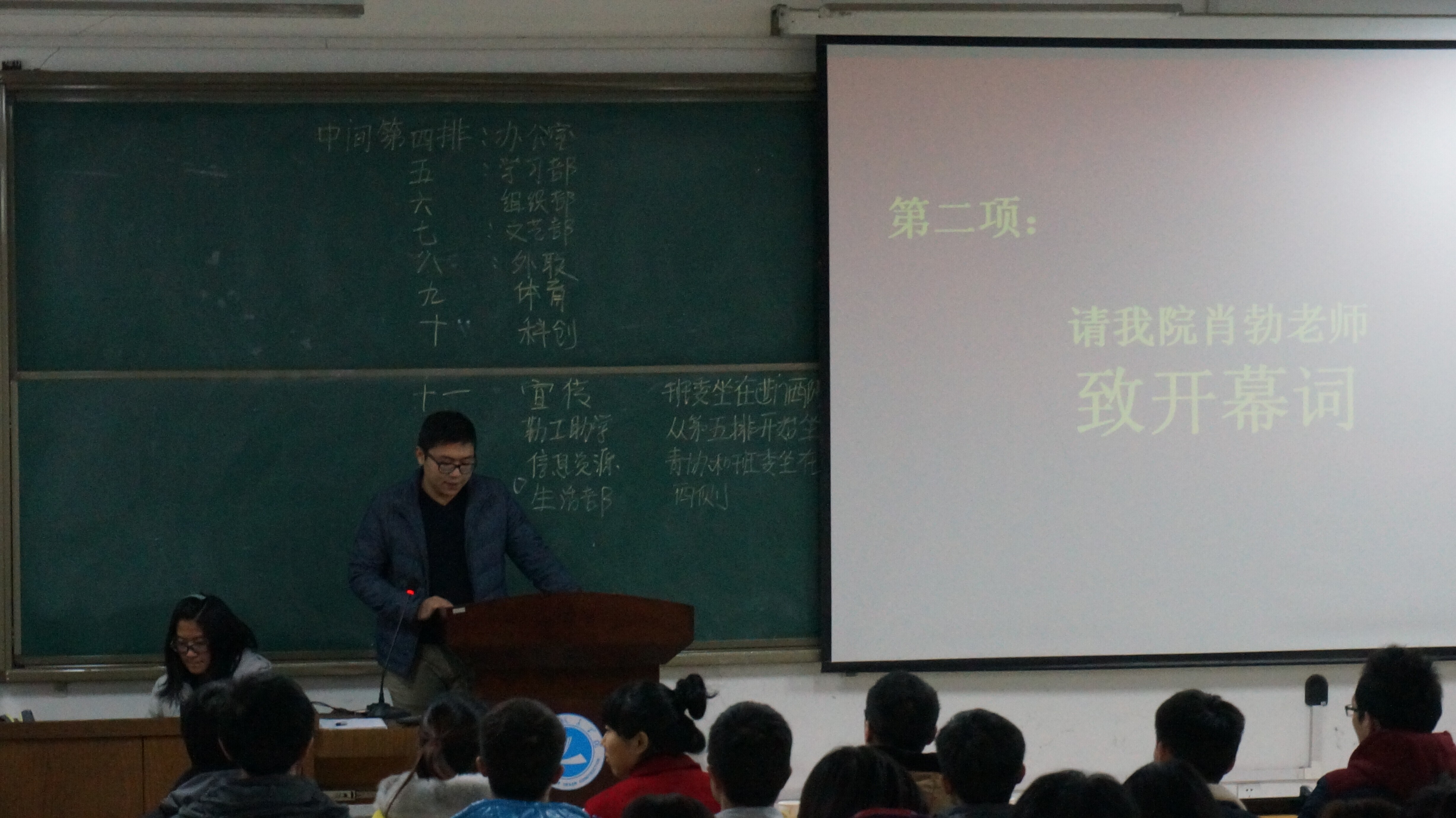 大会开始由肖勃老师致开幕词,肖老师肯定了学生会的工作,同时预祝此次大会圆满成功。随后由郝丰恺学长作第四届学生会选举办法报告,由薛明学长作学生会代表资格审查报告,由陈秋帆学姐作监票人、计票人、计时人资格审查报告,由佟童学姐作候选人政审报告。